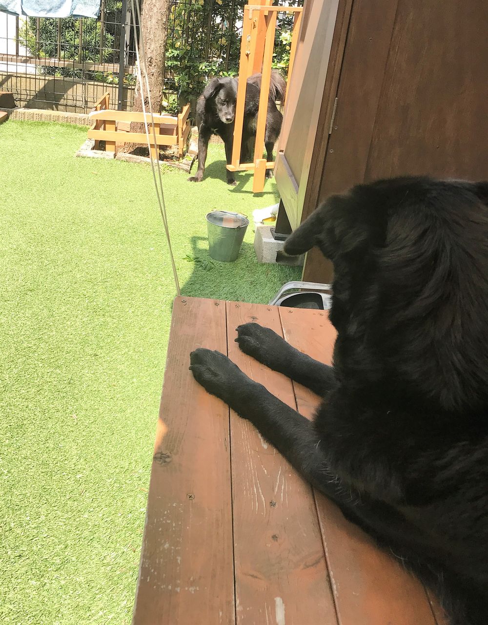 日陰のデッキでくつろぐ小夏。